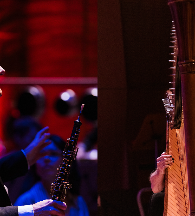 For an amplified ensemble of saxophones, uilleann pipes, flugelhorn/slide trumpet, percussion, harp, piano, violin, cello and contrabass